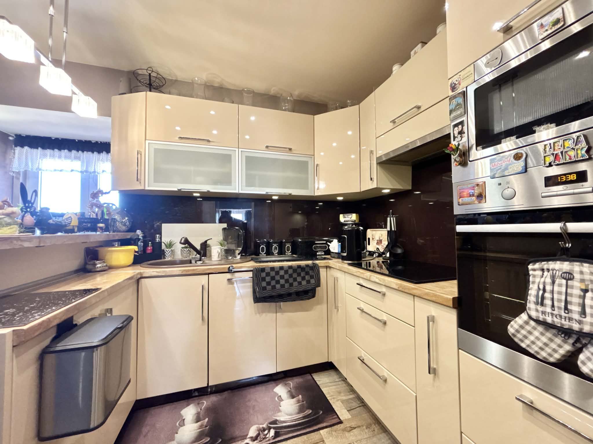 – dużej kuchni w zabudowie z oknem,