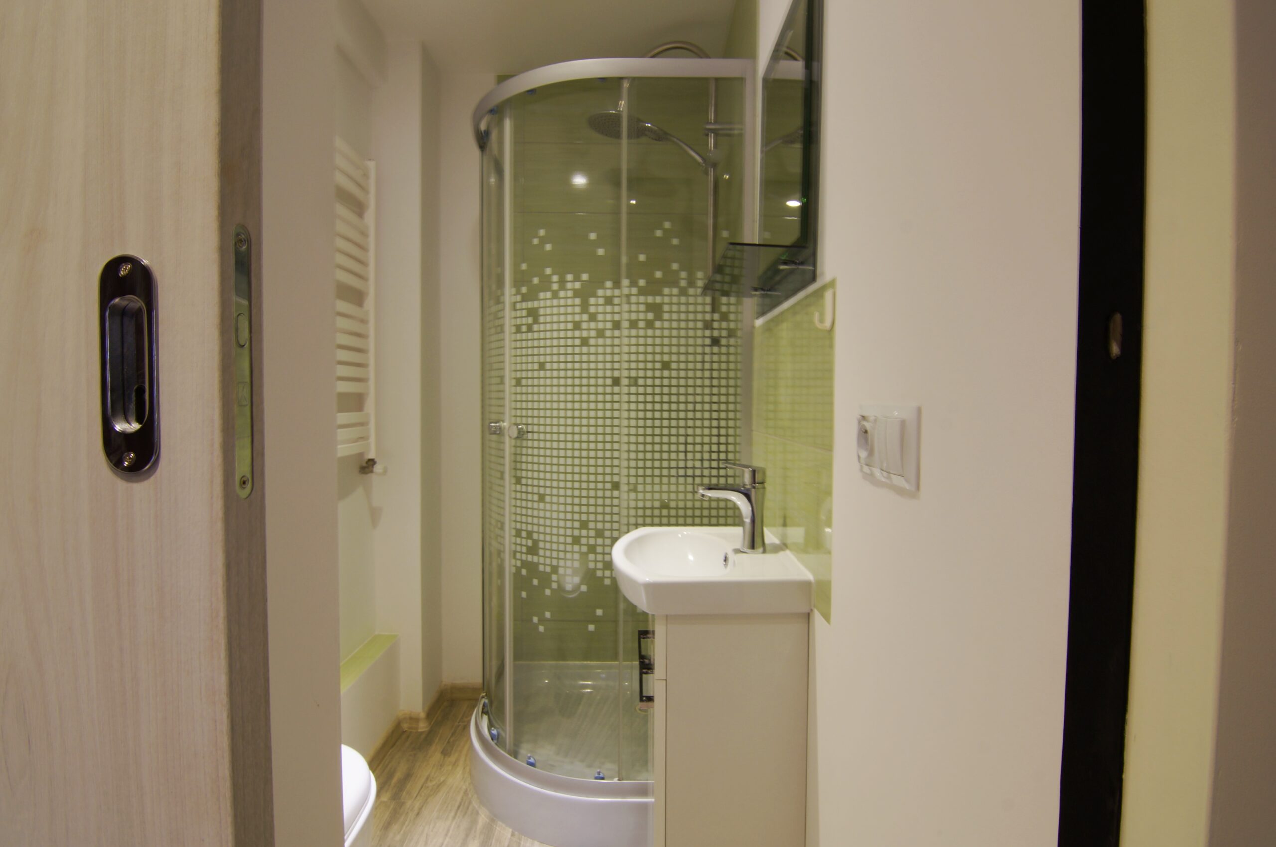 – łazienki wyposażonej w kabinę prysznicową, toaletę i umywalkę,